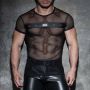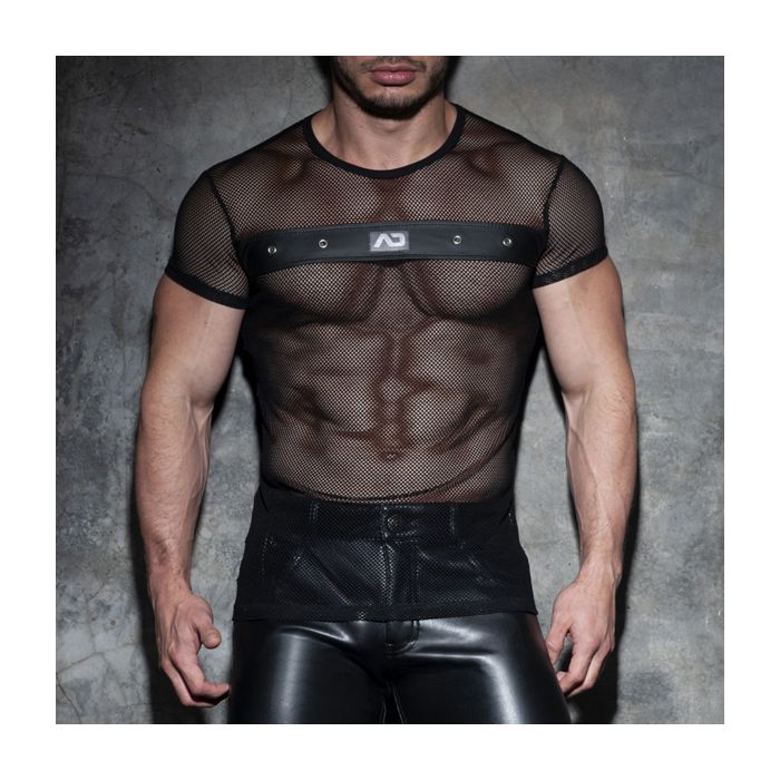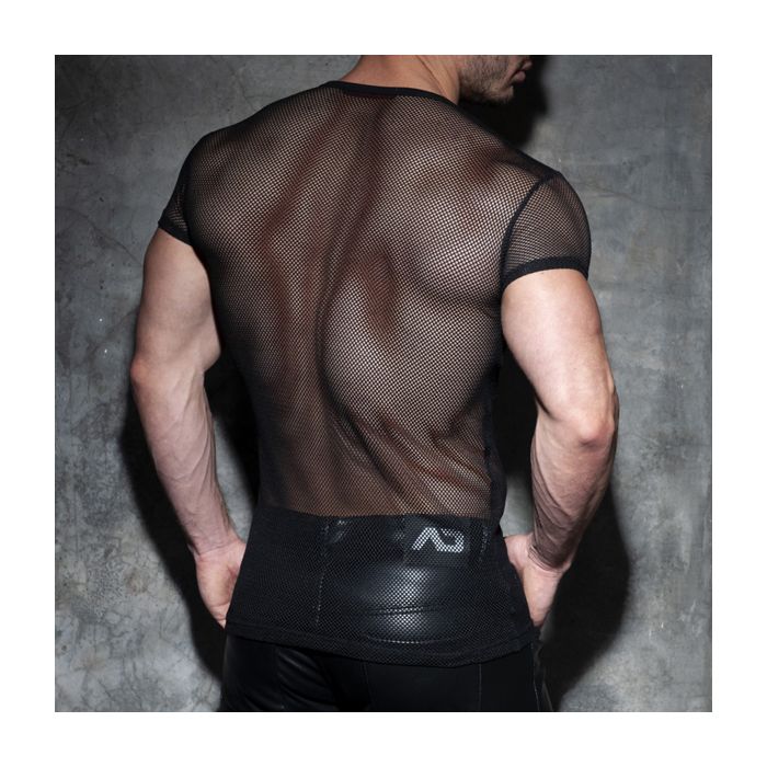 Addicted Fetish Mesh Mixed T-Shirt - Zwart