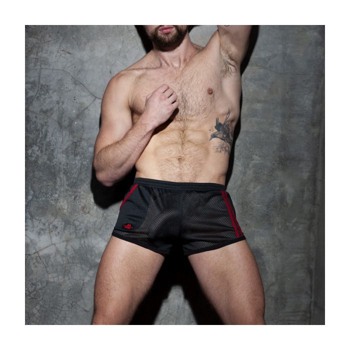 Gemaakt van ademend sportief mesh, bieden deze shorts ongeëvenaard comfort en een trendy uitstraling die je outfit naar een hoger niveau tilt. De opvallende race strepen in de kenmerkende zwarte fetisj kleurcode voegen een sportieve flair toe, waardoor je met zelfvertrouwen kunt trainen of ontspannen met vrienden. Of je nu in de sportschool bent of een dagje in de stad doorbrengt, deze shorts zijn de ideale keuze.