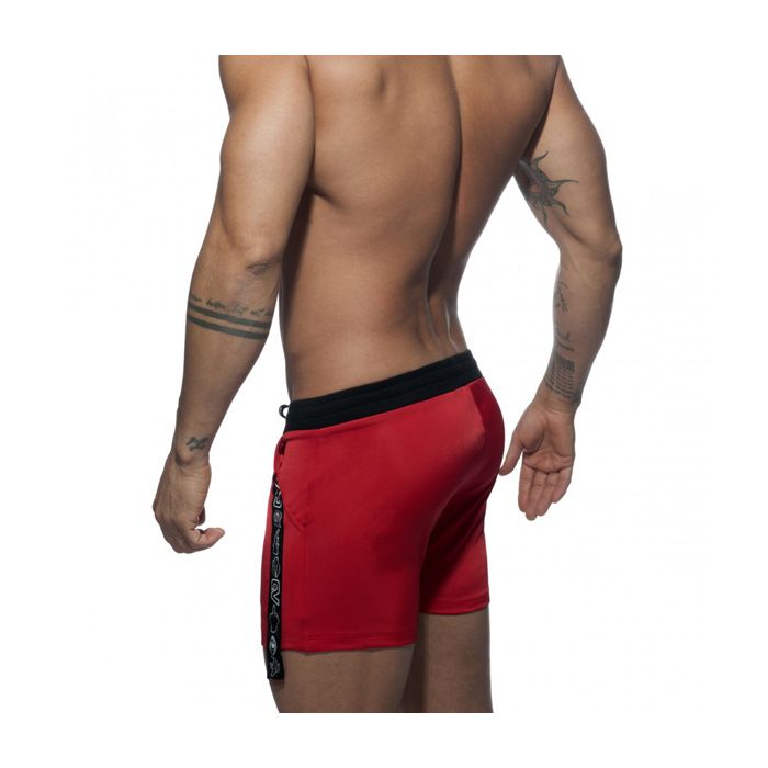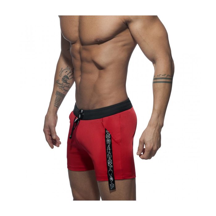 Deze short is niet alleen functioneel, maar ook stijlvol. De praktische steekzakken bieden voldoende ruimte voor al je essentials, zodat je alles wat je nodig hebt binnen handbereik hebt. Het opvallende bedrukt "tape" dat uit de linker steekzak hangt, voegt een trendy accent toe aan je look, waardoor je er altijd goed uitziet, of je nu aan het sporten bent of een casual dagje uit hebt gepland.