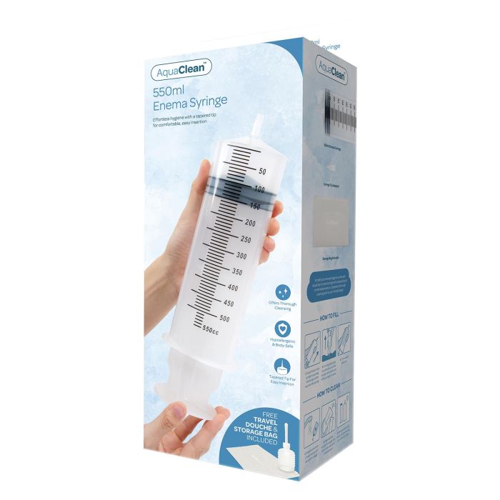 Maak intieme hygiëne eenvoudig en effectief met de AquaClean Nema Klysmaspuit van 550 ml. Deze gebruiksvriendelijke klysmaspuit is perfect ontworpen met een taps toelopende punt, waardoor inbrengen moeiteloos en comfortabel is. Met een royale inhoud van 550 ml biedt deze spuit voldoende capaciteit voor een grondige reiniging, zodat je je altijd fris en schoon voelt, ongeacht de situatie. De set wordt geleverd met een compacte, reisvriendelijke douche en een handige opbergtas, waardoor je jouw hygiëne ook onderweg kunt prioriteren. Of je nu thuis bent of op reis, met AquaClean kies je voor zorg en netheid zonder gedoe. Geef jezelf de zorg en netheid die je verdient en ervaar het verschil!
