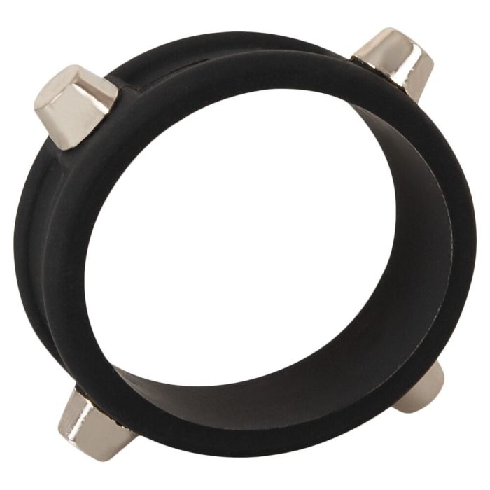 Deze ring is ontworpen om niet alleen een luxe uitstraling te bieden, maar ook om je zelfvertrouwen een flinke boost te geven. De metalen studs voegen een stoer accent toe, waardoor je deze cockring met trots kunt dragen als een aantrekkelijk accessoire.