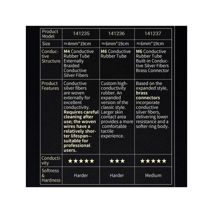 Wat deze ringen echt onderscheidt, is de unieke combinatie van een laagweerstand rubbersubstraat en een geleidende zilveren kern. Dit innovatieve ontwerp verlaagt de weerstand van honderden ohms tot slechts enkele tientallen, wat zorgt voor een krachtige stimulatie tijdens gebruik. Elk model heeft zijn eigen tactiele eigenschappen, zodat je de ring kunt kiezen die het beste bij jouw voorkeur past.