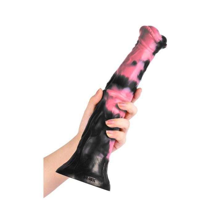 De Horse Dildo Ragulf Zwart-Roze is een uniek seksspeeltje dat is ontworpen met een dierlijke vorm voor een intense ervaring. Met een inbrenglengte van 2 cm en een breedte van 5,5 cm op het "kwastje", biedt deze dildo een bevredigende sensatie. De breedte begint bij 4 cm en bereikt uiteindelijk 5,5 cm voor extra stimulatie.