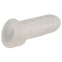 Deze unieke accessoire is ontworpen om je penis snel en eenvoudig te vergroten met maar liefst 1,3 cm in zowel dikte als lengte. De elastische, transparante sleeve glijdt moeiteloos over je penis en past perfect dankzij de stimulerende groeven aan de binnenkant. Deze groeven zorgen niet alleen voor een heerlijke wrijving, maar bieden ook een anti-slip effect, zodat je je geen zorgen hoeft te maken over de sleeve tijdens de meest intense momenten van genot.