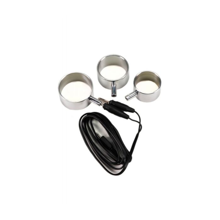De Rimba Electro Sex Cockringen Set bestaat uit 3 cockringen die uni-polair zijn, wat inhoudt dat je altijd 2 ringen tegelijk moet gebruiken om stroom te krijgen.