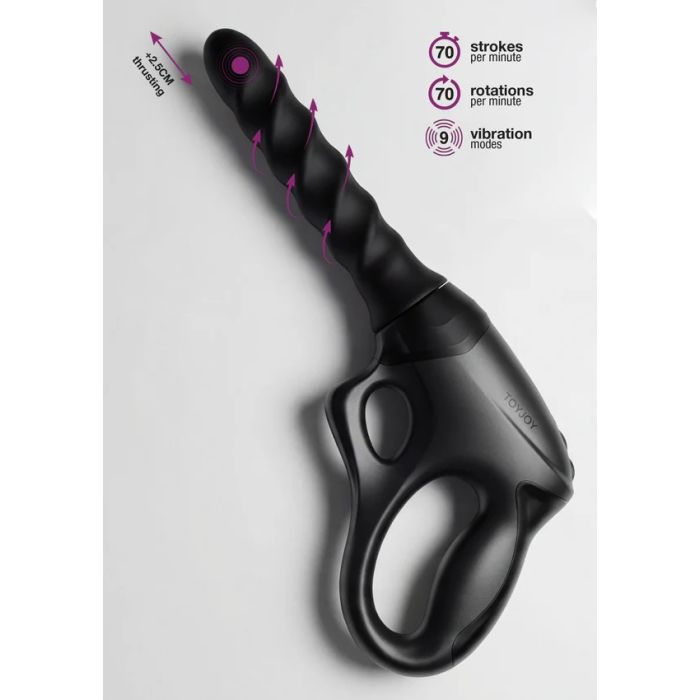 De Cadence Fatale PRO+ is uitgerust met een unieke pistoolgreep die zorgt voor een stevige en moeiteloze controle, zodat je je volledig kunt overgeven aan de sensaties. De gepatenteerde 360° roterende, stuwende en vibrerende schacht creëert een werveling van interne sensaties die met elke seconde intenser worden. Met een krachtige stuwende beweging die tot 2,5 cm reikt en maar liefst 70 slagen en rotaties per minuut levert, ben je verzekerd van een diepgaande en opwindende ervaring. Kies uit 9 verschillende vibratiestanden om je stemming perfect aan te passen, of je nu gaat voor een gelijkmatige puls of een gewaagde draai.
