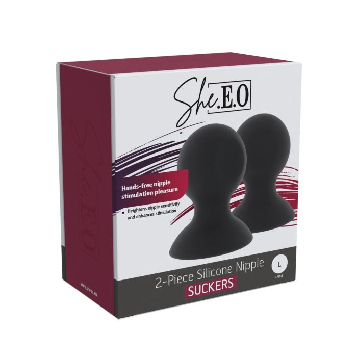 De She.E.O Siliconen Tepelzuigers in maat L is jouw nieuwe geheime wapen voor een speelse en sensuele ervaring! Deze tepelspeeltjes zijn gemaakt van zacht, lichaamsveilig silicone dat niet alleen heerlijk aanvoelt, maar ook zorgt voor een opwindende, handsfree stimulatie. Met een simpele druk creëer je een vacuüm dat je tepels optilt en de gevoeligheid naar nieuwe hoogten brengt, perfect voor zowel beginners als ervaren gebruikers. De flexibele en gladde textuur maakt het aanbrengen en verwijderen een fluitje van een cent; til gewoon de rand op en je bent klaar voor plezier. Bovendien zijn ze super eenvoudig schoon te maken, waardoor ze ideaal zijn voor zowel solo- als partnerplezier. Verwen jezelf of je partner met deze subtiele maar merkbare stimulatie en laat je zintuigen prikkelen als nooit tevoren!