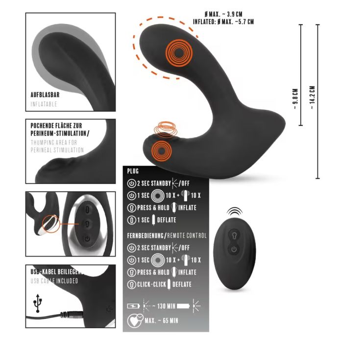 Met een simpele druk op de afstandsbediening blaas je deze plug op voor een intens vol gevoel dat al je zintuigen prikkelt. Geniet van maar liefst 10 verschillende vibratiestanden, waaronder een unieke luchtdrukontspanningsfunctie en pulserende tikstanden. Of je nu alleen speelt of samen met een partner, de afstandsbediening heeft een indrukwekkend bereik van 8 meter, waardoor je de vrijheid hebt om je ervaringen te delen of jezelf te verwennen.
