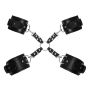 Comfort staat voorop met de brede leren boeien, die zijn ontworpen met een dikke, zachte vulling en gestikte randen voor een luxe gevoel. De verstelbare gespsluitingen zorgen voor een perfecte pasvorm, terwijl stevige ringen de bevestiging van de karabijnhaken vergemakkelijken. De verbindingsketting met meerdere karabijnhaken en de leiband met handlus maken deze set compleet en veelzijdig. Laat je fantasie de vrije loop en geniet van een onvergetelijke bondage-ervaring met deze professionele set!